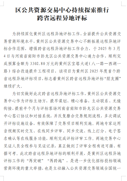 区公共资源交易中心持续探索推行跨省远程异地评标