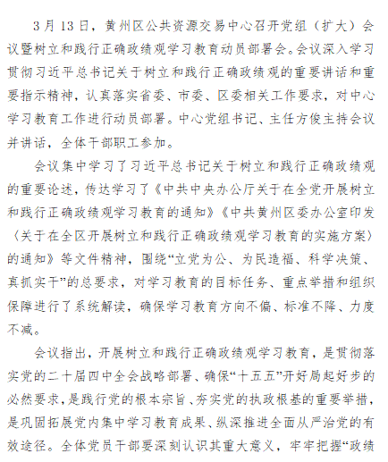 黄州区公共资源交易中心召开树立和践行正确政绩观学习教育动员部署会