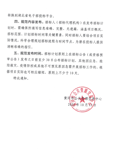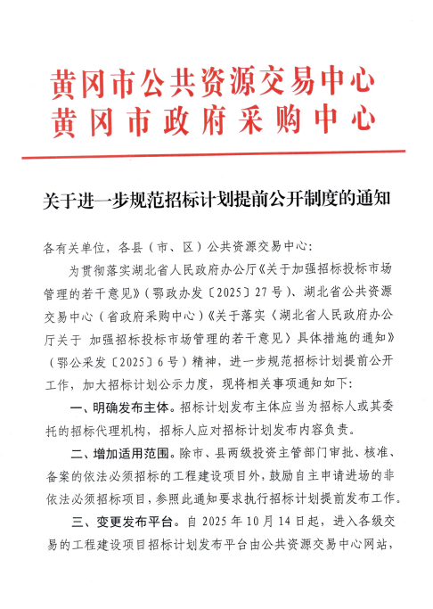 黄冈市公共资源交易中心关于进一步规范招标计划提前公开制度的通知